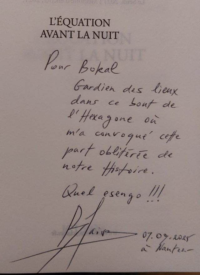 C ‘était plus fort qu’eux : devant la librairie Coiffard à Nantes le mardi 7 octobre à presque 22 heures, on pouvait distinguer même des infimes aspérités sur leurs 32 dents arborées encore une demi-heure après la présentation du roman « L’équation avant la nuit » par son auteur Blaise Ndala…